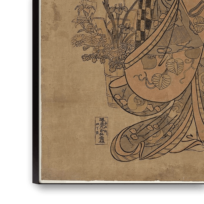 Suzuki Harunobu (1725 - 1770) was a prominent 18th century Japanese woodblock print artist known for his significant contributions to ukiyo-e art. He is often regarded as one of the pioneers of the colourful woodblock print. Harunobu was distinguished by his delicate and elegant depictions of beauties, everyday scenes and nature motifs. He played an important role in the development of the ukiyo-e style and helped to perfect the techniques of multi-colour printing. Harunobu's works reflect the refined aesthetics and cultural life of the late Edo period in Japan and are now highly valued works of art that showcase his artistic sensibility and skill.