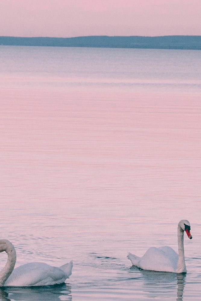 Lake Balaton in Hungary is the largest lake in Central Europe. The view is endless and during sunset the sky often turns pink, purple, orange or yellow. These two swans certainly have the best spot to enjoy this spectacle!