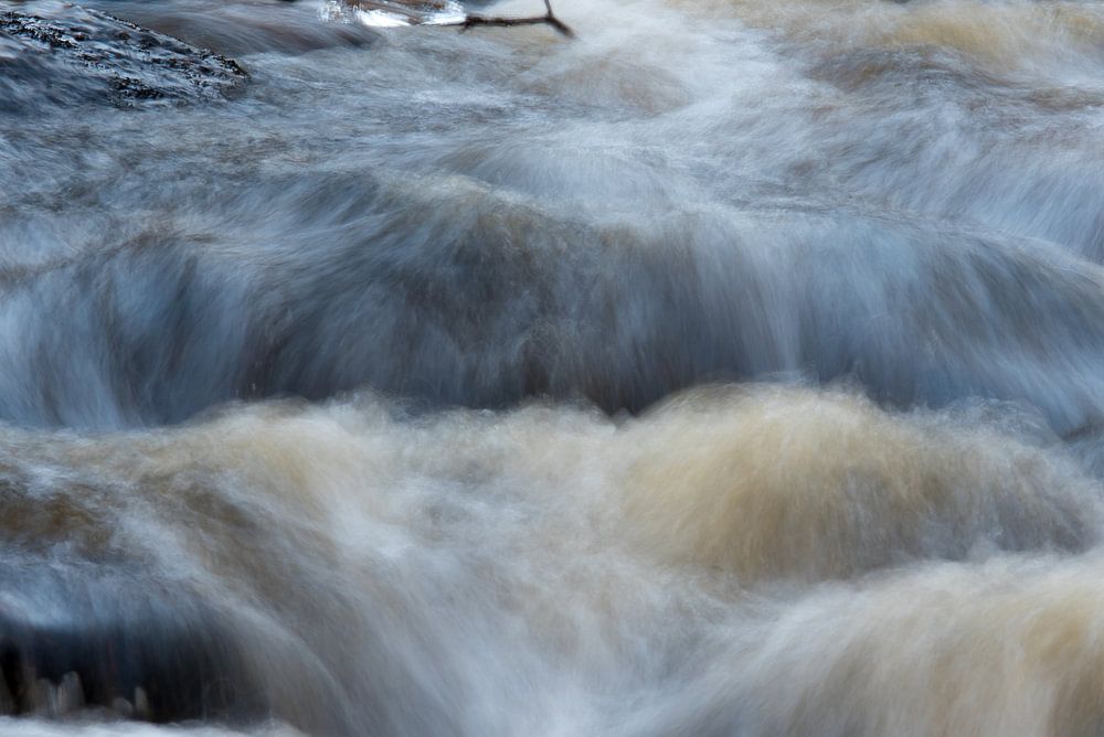Running water from a stream in the Swedish landscape in the province of Småland, Kalmar län they are the first days of winter.