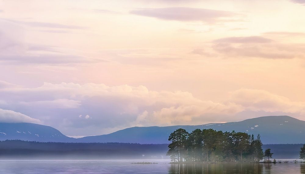 Sweden and its beautiful lakes with small islands and reflections.