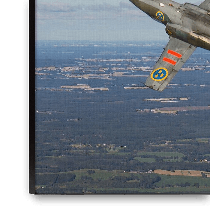 Two Swedish Air Force Sk60B training jets perform a 'climb and break' in formation during a training flight.
