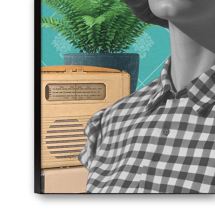 Late 1960s. She’s the picture of classic elegance — perfectly styled hair, bold lipstick, and timeless poise. But there’s a twist: on her head, a pair of VR goggles reveals the catalog of the world’s most famous Swedish furniture store. One click, and the order is placed — no queues, no family debates, just pure convenience. For her, it’s freedom. For some men at the time? A crisis of “domestic authority.” This artwork blends retro style with biting irony, celebrating women who know what they want — whether it’s a bookshelf or a better world.