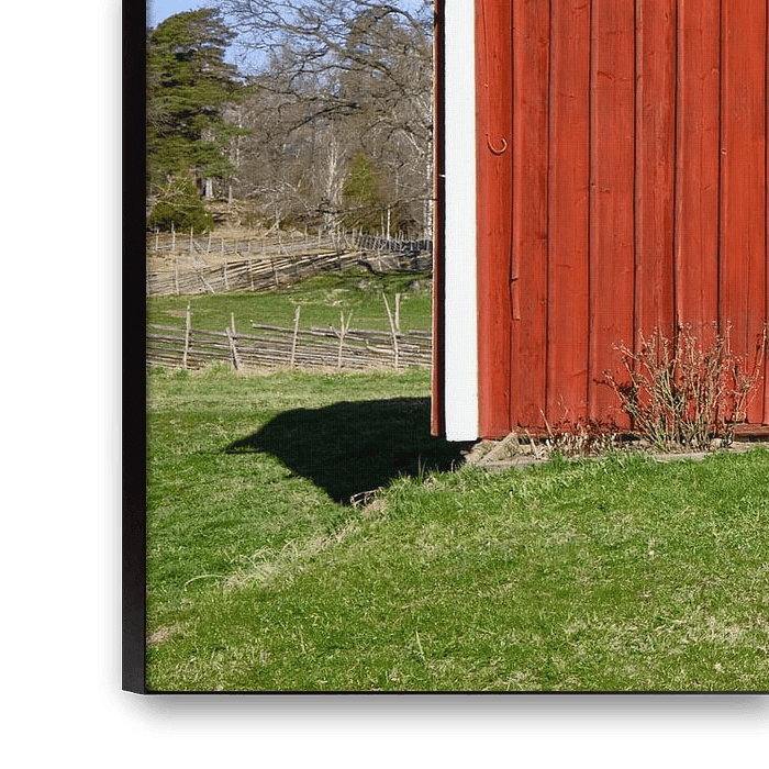 Buy this landscape artwork Swedish red house by Geertjan Plooijer on canvas, ArtFrame, poster and wallpaper, printed on demand in high quality.