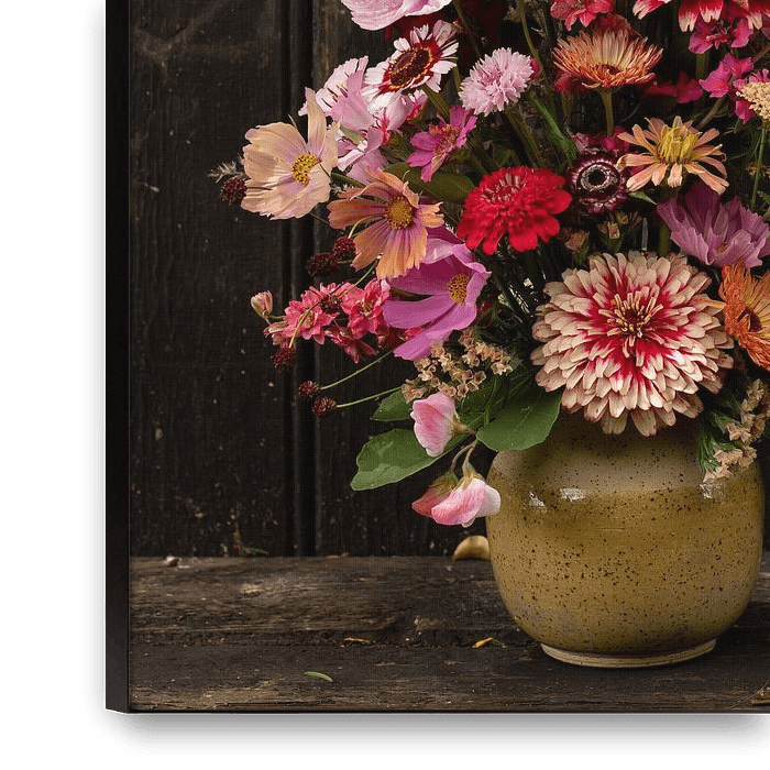 In my photos, I combine my passions of flowers and photography. I am a florist and have a picking garden with my parents and sister where we grow our own flowers. So my images are created entirely by my own input. We have mostly grown the flowers ourselves. The flower arrangements are made by me in a hand-turned vase made by my mother Marianne. Out of season, I also use other beautiful materials, because there is so much beauty out there.