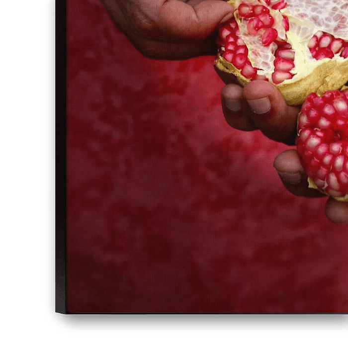 A tour of the Oasis of the Todra Gorge in Morocco ended in tasting delicious pomegranates. The colour of the berber's clothing perfectly matches the ruby red of the pomegranate