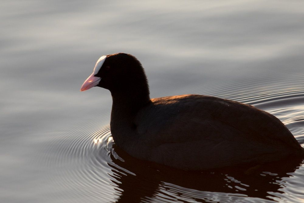 A coot in its natural habitat. Swimming in a lake in search of food.