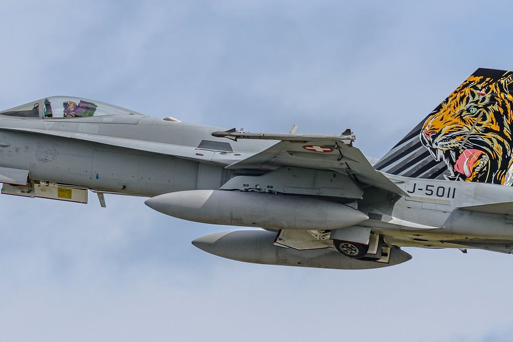 A Swiss Boeing F/A-18C Hornet took off during the NATO Tigermeet 2017 held at Naval Air Base Landivisiau in Brittany.