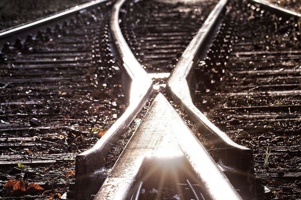 Switch at Wijlre station in the backlight of the rising sun on a cold autumn day.