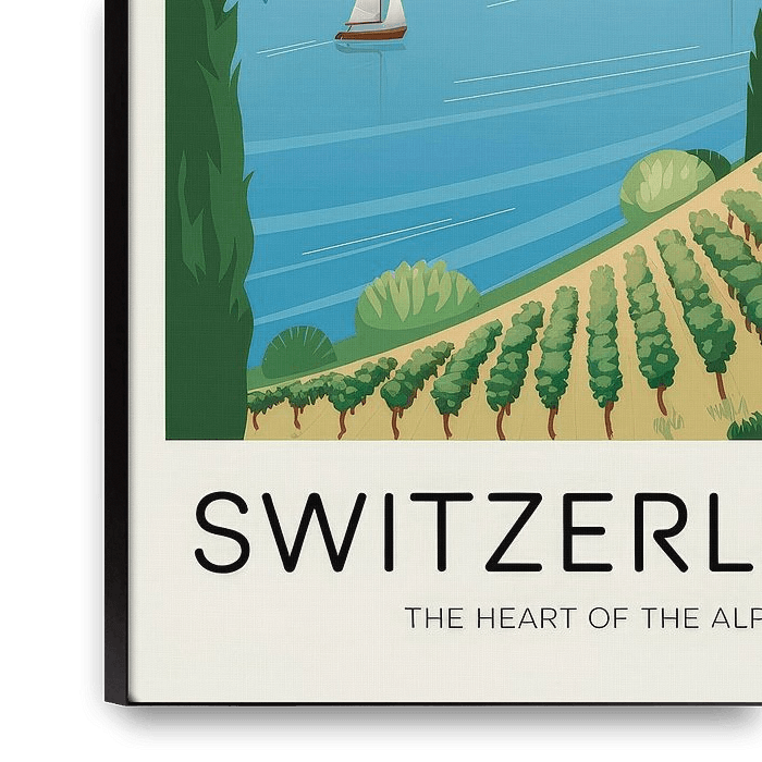 Buy this landscape artwork Switzerland Vintage Travel Poster by Poster Art Shop on canvas, ArtFrame, poster and wallpaper, printed on demand in high quality.