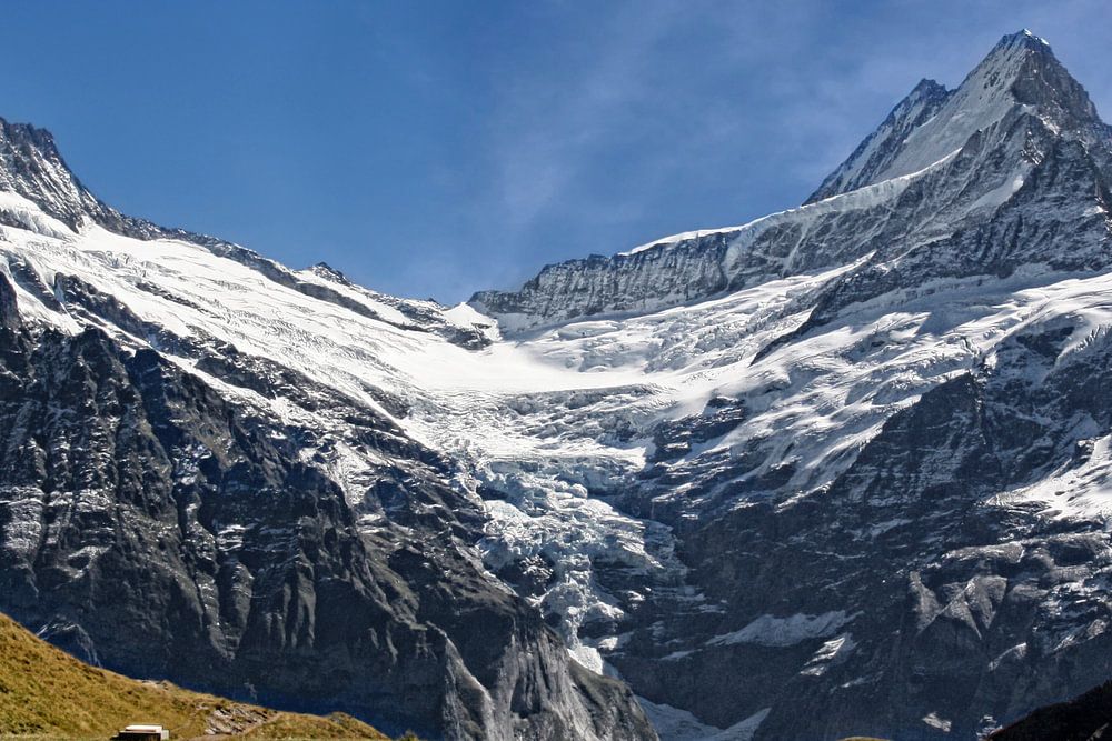 The Bachalpsee in Grindelwald with a view of the Alpine panorama of the Bernese Oberland.