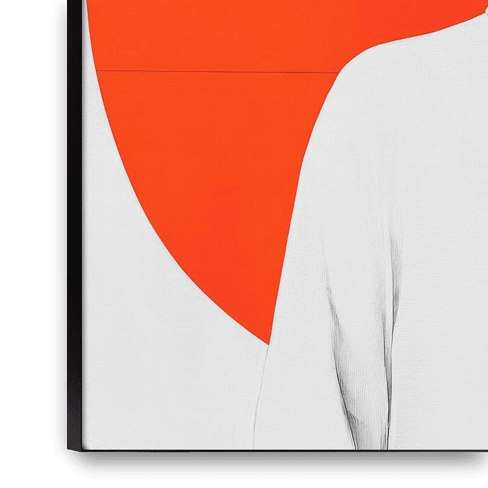 A powerful interplay of colours and shapes unfolds: a bright red frames the contemplative calm of a woman whose face is hidden behind a dramatic black surface. This fascinating contrast between warmth and darkness invites reflection and raises questions about identity and perception.
