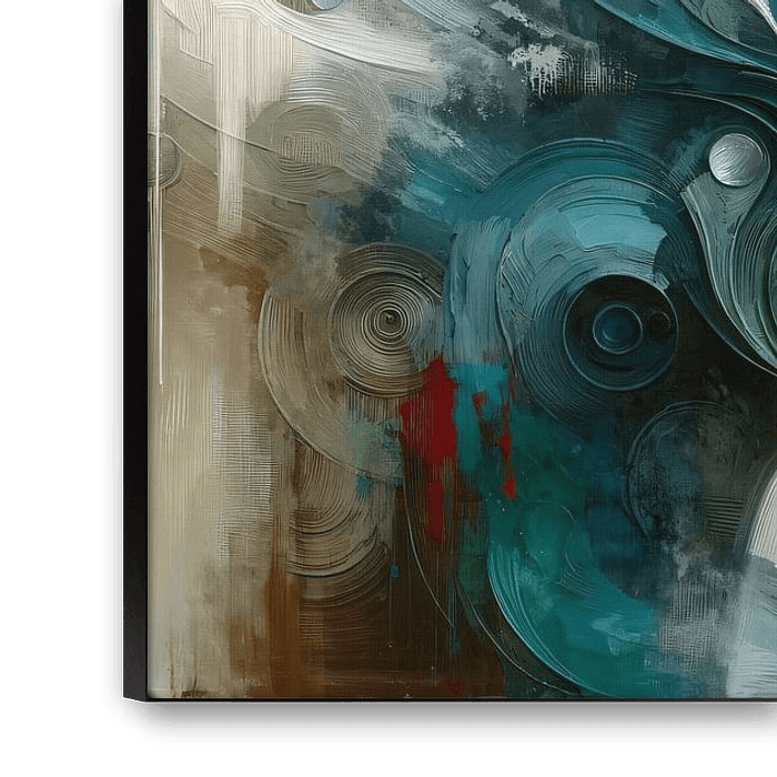 This AI-created artwork embodies a captivating blend of abstract and figurative elements, merging into a symphony of color and form. It depicts a face intertwined with its swirling surroundings, symbolizing the unity of consciousness and nature. The cool blues and greens radiate tranquility, while bursts of red hint at a deep emotional undercurrent. Dynamic and expressive brushstrokes evoke a sense of movement and change. This piece is a unique addition to modern interiors, serving as both a calming focal point and a conversation starter. It reflects the following aspects: