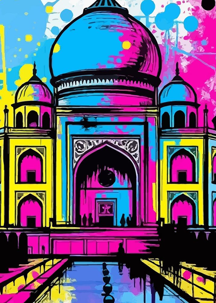 Buy this landscape artwork Taj Mahal Pop Art Splatter by MIROKKU on canvas, ArtFrame, poster and wallpaper, printed on demand in high quality.