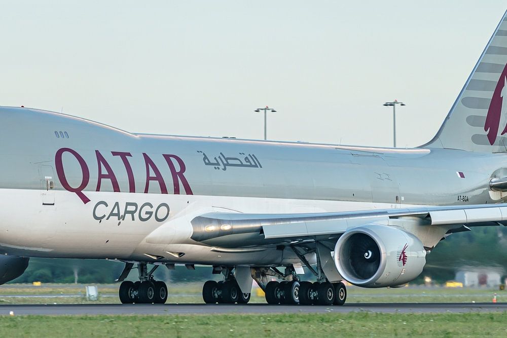 Take-off Boeing 747-8 Cargo from Qater Airways.