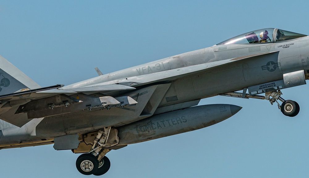 This Super Hornet is from VFA-31 (Strike Fighter Squadron 31), known as Tomcatters. VFA-31 is stationed at Naval Air Station Oceana. The Tomcatters are the third-oldest Navy Fighter Attack squadron still active today.