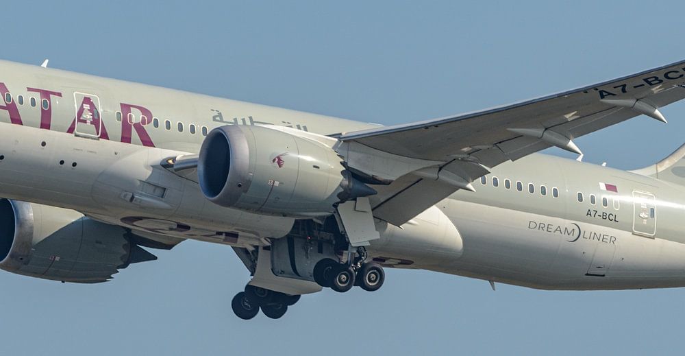 Taking off Qatar Airways Boeing 787-8 Dreamliner.