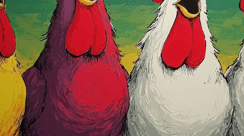 Hang een schilderij van onze pratende en zingende kippen aan je muur – en ontdek hoe kunst je huis niet alleen mooier, maar ook levendiger maakt.