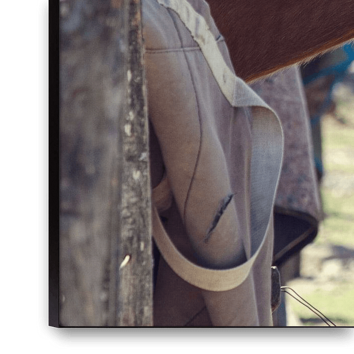 Buy the photo Tame Horse in the Stable - Serene Rural Photography by Carolina Reina Photography on canvas, ArtFrame, poster and wallpaper, printed on demand in high quality.