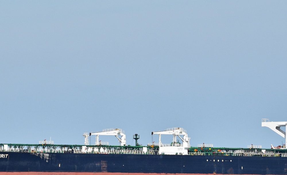 The tanker Los Angeles Spirit leaves the port of Rotterdam.