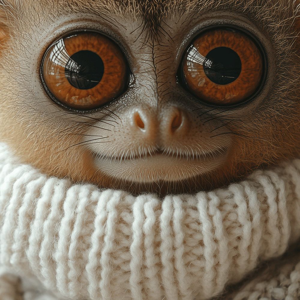 In each portrait, an animal exudes not only its natural charm but also an unexpected humanity. From a cocky alpaca in a burgundy turtleneck to a confident lion wearing a deep orange jumper - each piece exudes personality. The details in the textures of the fabrics, the soft shadows around the necks, and the vivid eyes of the animals make each portrait come alive.