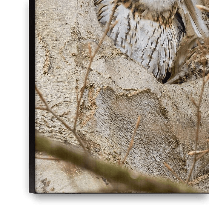 Buy this bird art Tawny owl resting. by Menno Schaefer on canvas, ArtFrame, poster and wallpaper, printed on demand in high quality.