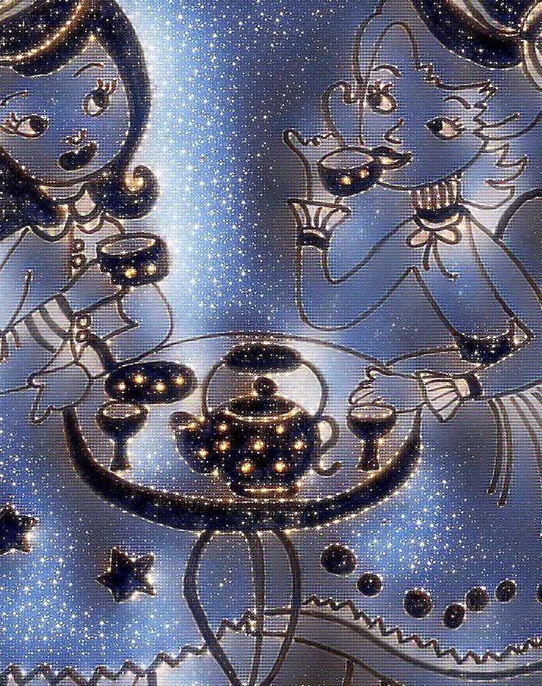 A drawing of two ladies at tea and edited it digitally.
