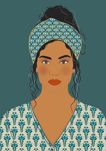 Buy this portrait Teal is Her Power by Studio Miranlantijn on canvas, ArtFrame, poster and wallpaper, printed on demand in high quality.