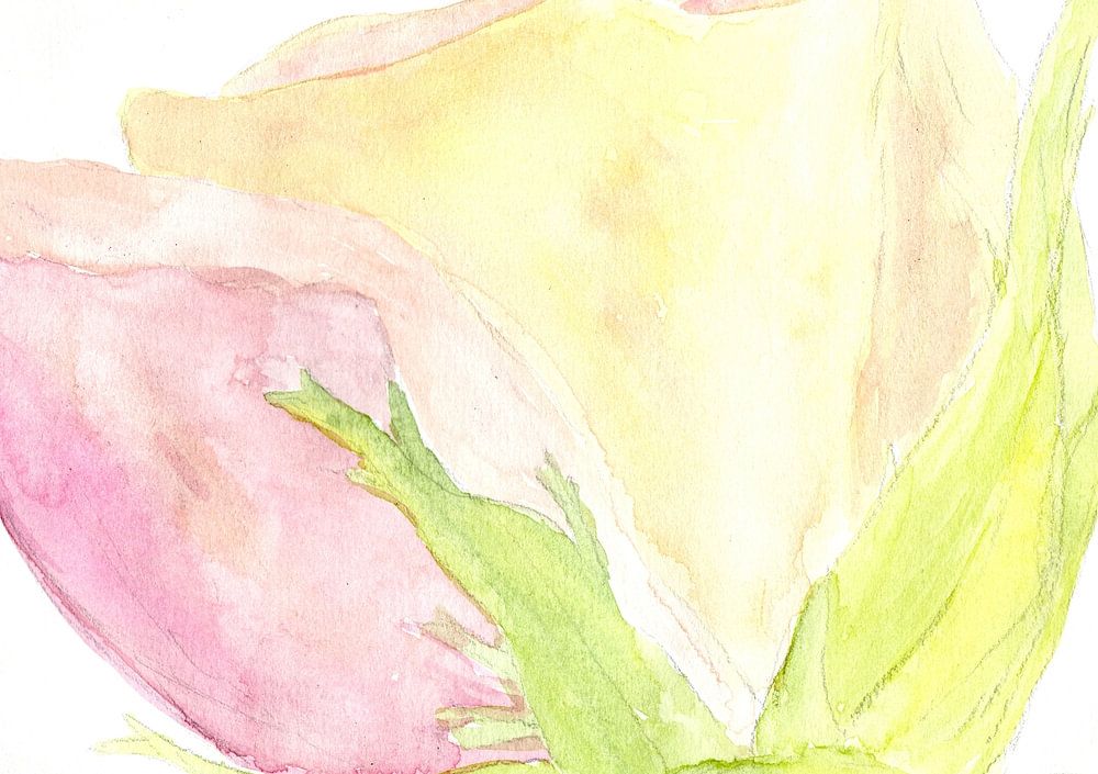 This watercolor shows a delicate rose flower in beautiful pastel color gradients