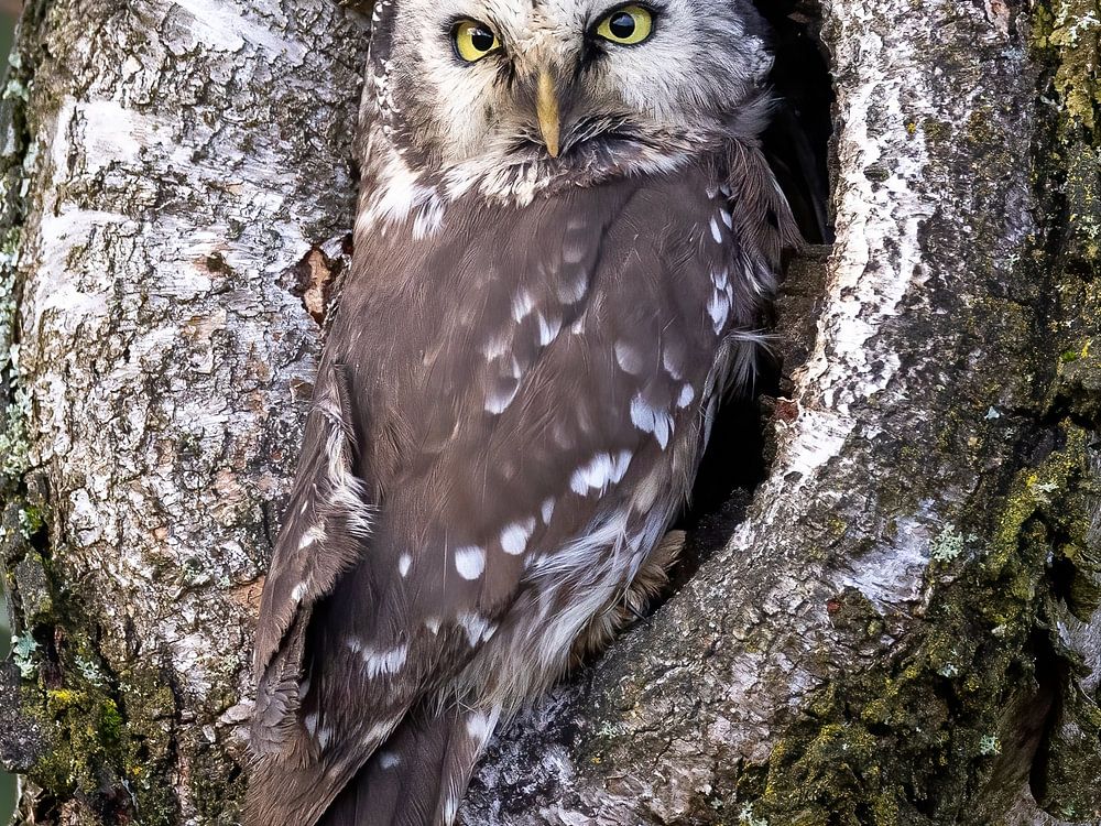 Buy this bird art Tengmalm's owl in its cave by Teresa Bauer on canvas, ArtFrame, poster and wallpaper, printed on demand in high quality.