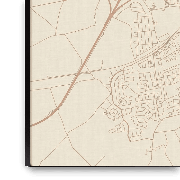 Explore Roosendaal with this Terracotta Style Map. The roads are colored in a dark coral shade that sits on the border between orange and brown. With a background in a creamy beige color, this map seamlessly fits into warm interiors that heavily incorporate pastel and beige tones. Combined with a subtle linen texture, this map adds a…