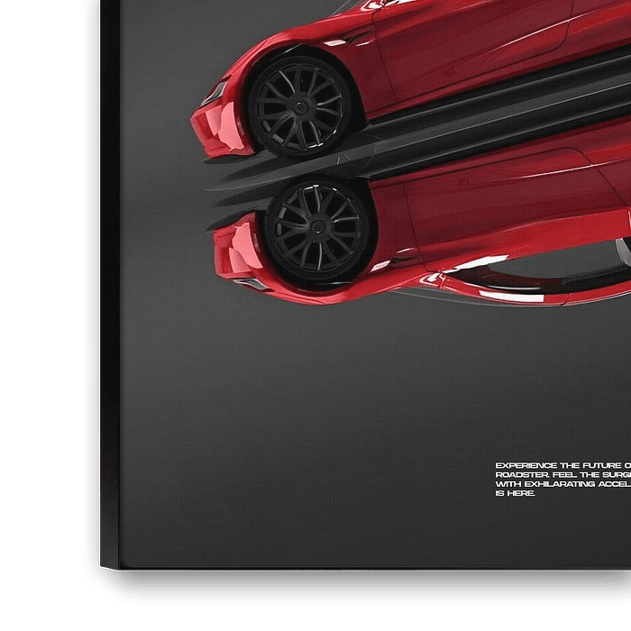 Buy this digital art artwork Tesla Roadster Poster by Ali Firdaus as a reproduction on canvas, ArtFrame, poster and wallpaper, printed on demand in high quality.