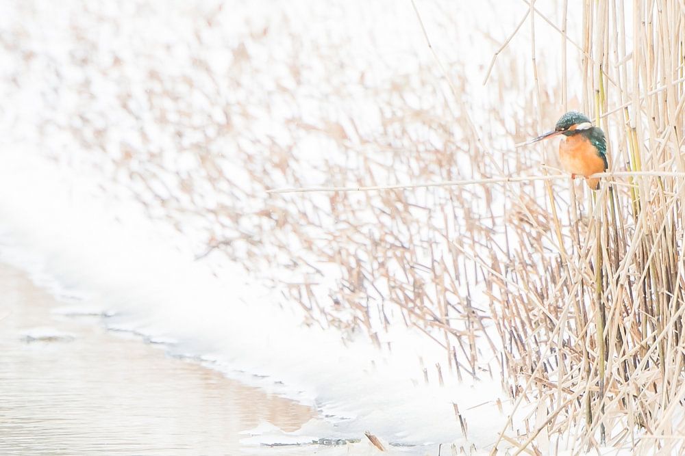 On Texel I found a Kingfisher from the car along the road between the reeds. Quickly I got out of the car and walked towards it, which enabled me to take this photograph. A Kingfisher in beautiful winter conditions in his habitat. He sat near a crack in the ice, the rest of the stream was frozen.