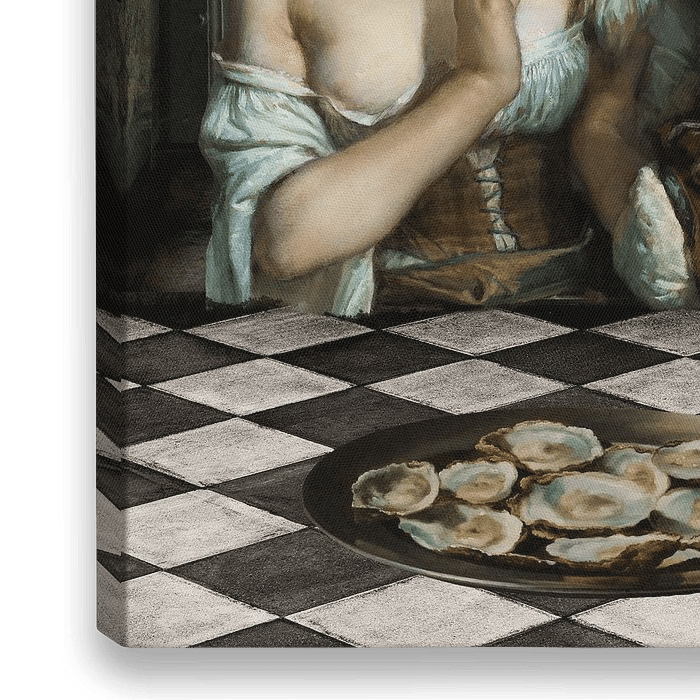 This may seem like a painting from days long gone, but in reality it is a collage of various images made by me, with the end result: an image about the aphrodisiac effect of oysters. The couple in love is part of a painting made by the Dutch painter Carel de Moor (1655 - 1938).