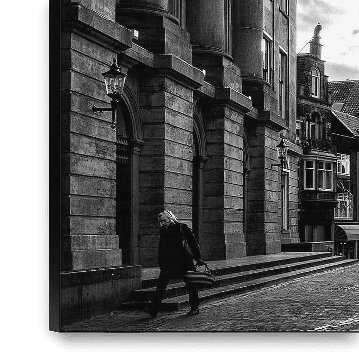 De Dom en de Vismarkt (The Cathedral and the Fish Market) in Utrecht as seen from the Stadhuisbrug in black and white is a recording of André Blom Photography from Utrecht. The photo is part of a collection of photos about Utrecht.