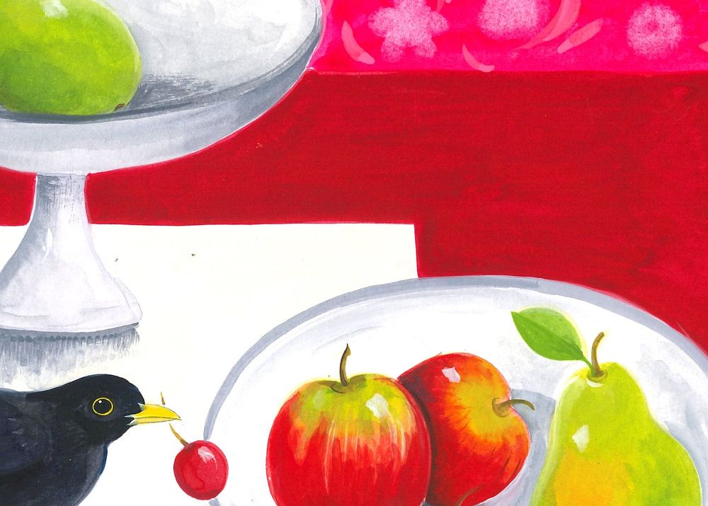 Buy this bird art The Cherry Picker by Isabelle Brent on canvas, ArtFrame, poster and wallpaper, printed on demand in high quality.