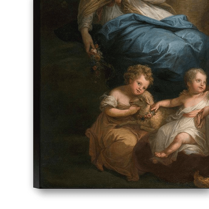 “The Family of the Earl of Gower” demonstrates Angelica Kauffman’s ability to render complex, multi-figure compositions. It also illustrates her frequent inclusion of classicizing elements in contemporary scenes.