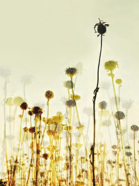 The images from the series The Fields show a strange natural world, a field with indefinable species of flowers and plants in bloom, but also in decay. Both are of a special beauty, and I try to capture these two moments in a single image.