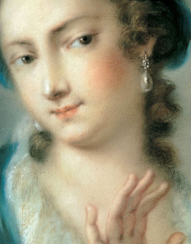 The Venetian Rosalba Carriera is considered one of the most representative figures of eighteenth-century European portraiture. Cosmopolitan and sought after for her extraordinary abilities, Rosalba was appreciated by all the connoisseurs and sovereigns of the time, including Louis XV. The artist took to the highest levels the very fine pastel technique, which was perfect for rendering the complexion of the graceful powdery visages of the Enlightenment era. This refined pastel belongs to the list of allegories made by Carriera, and depicts a young woman with a shiny pearl earring, warming her hand in front of a small brazier: an allegory of Winter or, more likely, of Fire.