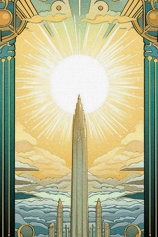 A colourful digital painting of the Gate of Heaven. This work is inspired by the shapes and colour palette of the Art Nouveau movement. The work gives a warm and classic look to your interior!