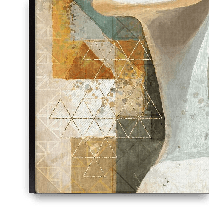 "The Golden Muse" is an ode to timeless beauty and modern elegance. This artwork combines geometric abstraction with the soft contours of a female portrait, with gold accents playing a central role. These accents symbolise luxury, light and inner strength, drawing the viewer directly into the world of the muse.