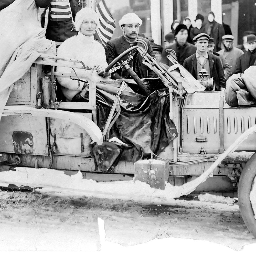 The Great Race New York to Paris 1908: French St. Chaffray with his team on de Dion
