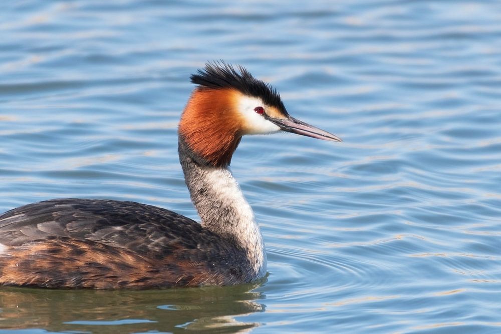 The grebe is known for its courtship. They live in all kinds of water and to gather food they dive and swim underwater in search of all kinds of aquatic animals.