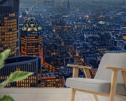 Hague skyline at night with the modern ministries, seen from New Babylon; The Hague, Netherlands