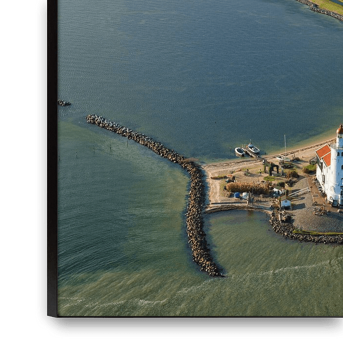 The Paard van Marken with the contours of the never completed Goudriaankanaal (1826), the canal would have locks here and flow into the IJsselmeer.© 6 Nov 2017 Marco van Middelkoop/Aerophoto-Schiphol.