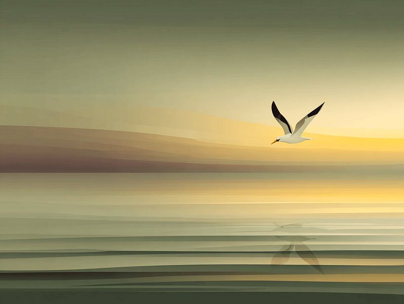 Buy this bird art The Jan van Gent at the Golden Horizon by Karina Brouwer on canvas, ArtFrame, poster and wallpaper, printed on demand in high quality.