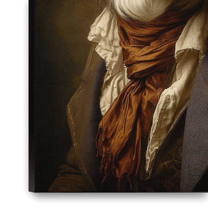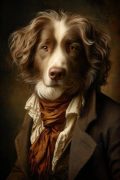 A dog with the look of a parlour philosopher, cloaked in decadent 19th-century splendour. His eyes whisper irony, his posture exudes the elegance of a poet. This masterful portrait combines baroque light with the charm of classical animal art - perfect for interiors that dare to think as well as dream. An Oscar Wilde-like figure -…