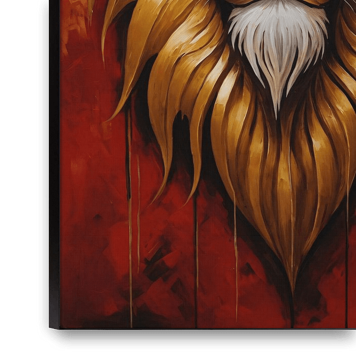 Imagine the king of animals, the noble lion, gracing your space with a regal presence. This modern artwork captures the essence of strength and wisdom, cloaked in brilliant gold against a background of deep red. With every brush stroke, the majesty of this magnificent animal comes alive, with the wavy mane conveying a sense of movement…