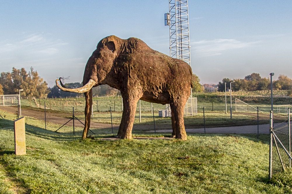The Mammoth is a sculpture that stands in Groessen along the Kandiadijk near the east side of the railroad tunnel under the Pannerdensch Canal, which is part of the Betuwe Route.