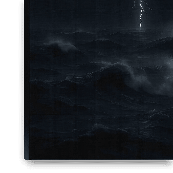 This work is about the overwhelming power of nature. The deep, dark blues and blacks create an intense, mysterious atmosphere. It is an image…