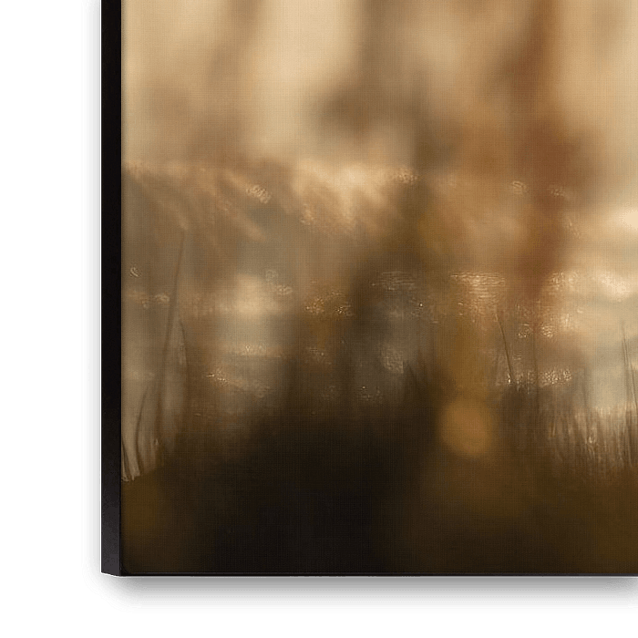 This artwork shows a majestic moose bathed in the golden light of the morning mist.
